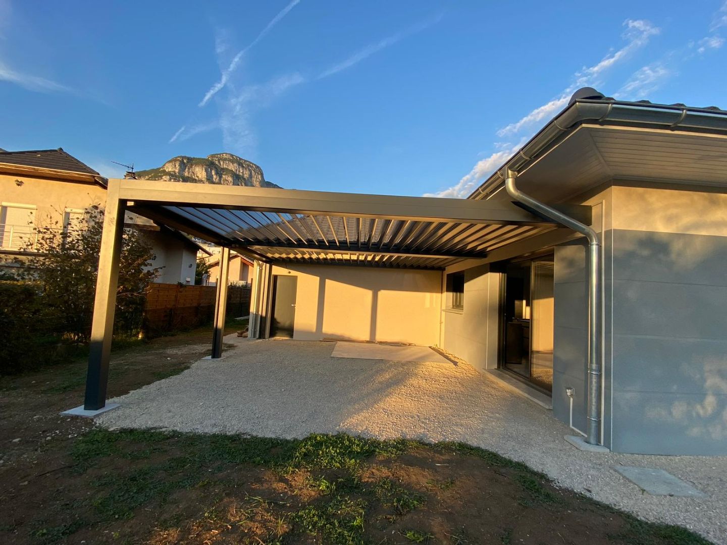 Votre terrasse devient une pièce de vie supplémentaire que vous souhaitez protéger du soleil pour vous y installer confortablement. La pergola bioclimatique OPEN se dote d’un toit plat et de gouttières afin de permettre l’évacuation de l’eau.